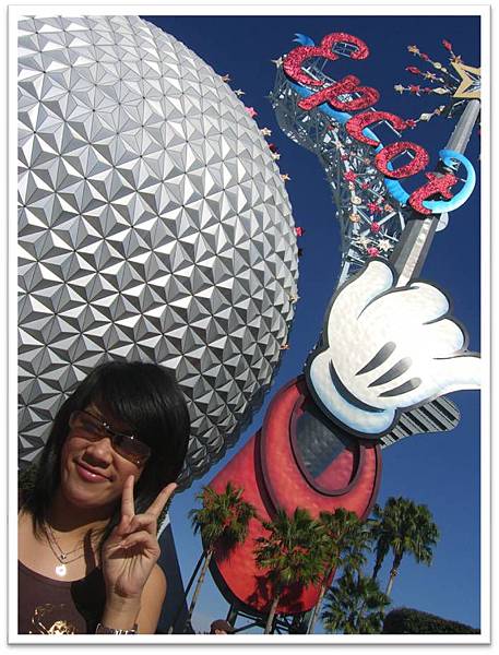Epcot主題公園的標的物就是這顆圓球,我每次去都沒放過與他合照的機會。
