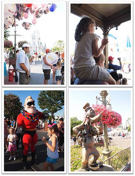 迪士尼的表演秀和遊行是永遠看不膩的,而且往往一天只有一次的表演,一定要在半個小時前先去卡位,不然就會錯過貼身與偶像近距離接觸的機會。沒錯,在美國混過加上年紀大了後,一整個很敢問,所以還會去問工作人員哪個定點是我們喜歡的偶像,所以我才有機會可以跟Mr. Incredible共舞一曲。
