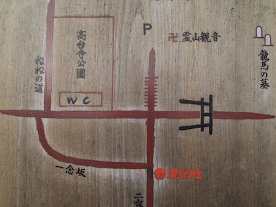 龍馬的墓位在一座山的半山腰,參觀目的也是得付錢的。當時他是與中岡慎太郎一起遭到刺殺,因此而被葬在一起。雖然說日本的墓地逛起來沒有很可怕,但我覺得還是要懷抱敬畏之心,就簡單拍了幾張照就快閃。但我卻還是有看到櫻花妹站在墓前手比YA的照相,這個我就真的是看不懂了。
