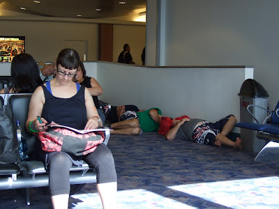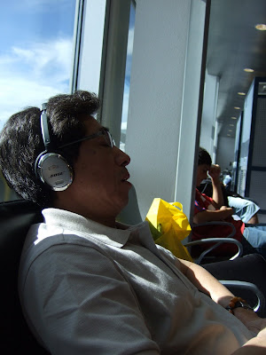 就在覺得有夠衰的時候,遇到了老爸的同業,他帶了他的美國籍兒子也是結束了shoe show的行程要去Los Angeles待兩天再回台灣。兩位台灣籍老爸就在漫長等待re-schedule的隊伍上開始抱怨起美國人做事的方法。