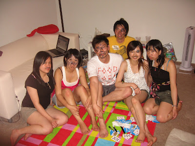 還有很白癡的猜拳遊戲,輸了就要被畫臉,這是我們的老招。中階等級,就是通通不准照鏡子,要等這個遊戲結束後拍照存證後才可以照鏡子。