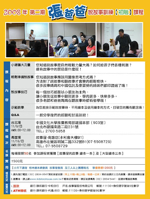 無意間,我發現故事屋有提供教你說故事的講座,直覺就會想到我又不是要去說故事給小朋友聽,但其實說故事的時候,如果把對方想成他其實是個六歲的小孩,或許我們就會有更多耐性或是更生動的把一個故事說完。