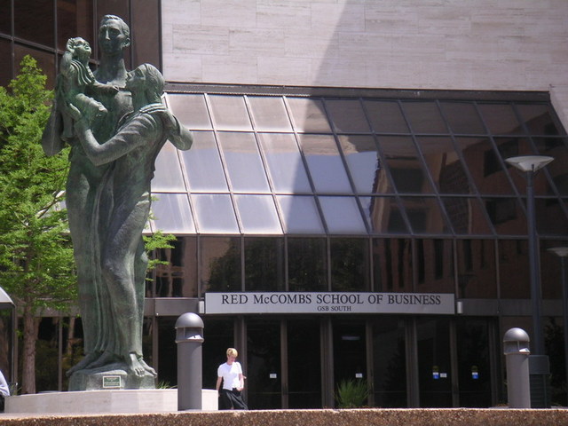 Austin這個city,雖然德州的capital位在這裡,但他卻不像Houston or San Antonio是個很觀光的都市,基本是靠UT打響了名字,以大學為主而發展的城市。所以這裡的大學資源雖沒有長春藤名校一堆有錢校友的豐富,但也算是州立大學裡,屬一屬二的,所以好多人都看中他的便宜和品質而來到這裡,當然很多亞洲人來愛這裡,還有一個原因是天氣,至少冬天不會冷到要穿上這一輩子都不會穿上的衣服。我對UT的印象,還沒有很完整,因為現在是summer vacation,大部分的學生都回家了,等到真正開學,預計有四萬六千多個學生會在這個大學城裡面遊蕩,餐廳裡不會有位子,就連路邊停車可能都要找20分鐘以上。但夏天,就如我二房東說的,你會以為這裡是死城,哈。但身為UT的學生真是亂多好處,在學校打local電話不用錢,坐公車不用錢,電影或表演有學生價,還有陸陸續續我要去發掘的好處,原本身為ESL的學生,很多好處是沒有的,但不知道為何,我的photo ID出現的是student而不是visitor,大部分我的同學都是visitor,老師開玩笑說,maybe他們很希望我留在這裡吧,I say maybe….當然我還也有去著名的商學院一探究竟,長廊上滿滿都是donators的名字,教室想像的優,甚至牆上都還有跑馬燈隨時跑著美國的股市各種指數,不愧是全美前50名的商學院。