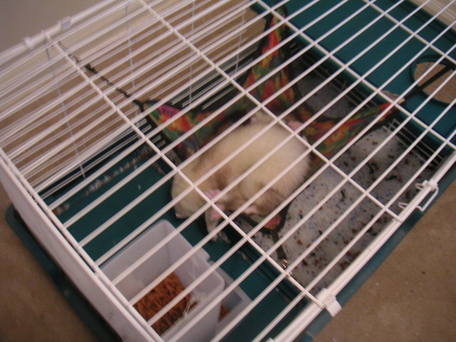 我的港仔室友有一個超大的電視,我們決定要先去買沙發然後再把電視搬出來,哈,真是很開心的不好意思是說我賺到了,不過在還沒沙發出現之前,你所看到的客廳,也是如圖所示,空無一物,只有我和他以及他馬子的鞋子 and一盞永遠為返家遊子點亮的明燈。以及暫時寄居在dining room的兩隻雪貂,千萬別說很屌,一開始我也覺得很屌,但後來看到他們會亂噴飼料在我的地毯時,心裡就不會有屌這個字眼出現。不過,我倒是覺得他們亂可憐一把的,每天被關在籠子裏面,除了睡覺還是睡覺,而且還被他主人當貓養餵貓食,哈。雖然一直說要把他們送走,不過我都已經在想是不是該幫他們取個名字了呢?