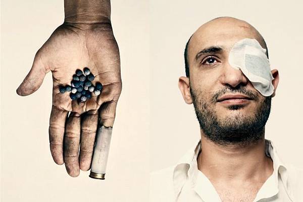 Ahmed Harara是住在開羅的一位牙醫,他在參與街頭抗議活動時,被驅趕示威的警察用橡膠子彈射傷了左眼,現在是左眼全盲的狀態,但他依然參與在抗議的行動之中。看完這張照片,我想起好小的時候,在電視上看到六四天安門坦克車要壓過那群人們的畫面。