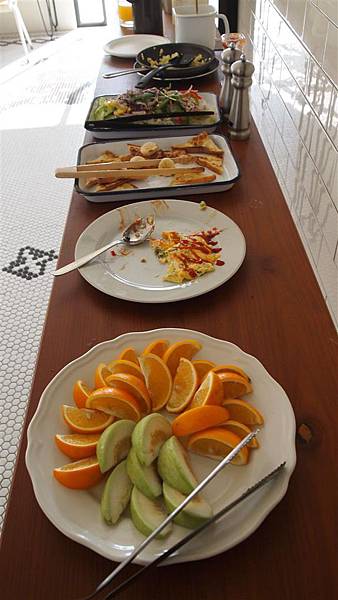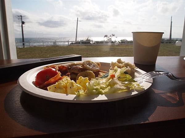 早餐是用自助式的,可能是過年期間住房全滿,工作人員感覺有點應接不暇,出菜的速度和份量都沒有辦法很快,不過我倒是覺得無所謂,因為光是這個無敵海景,我寧可多花點時間發個呆等待一下。BTW, 我覺得其實早餐很好吃耶,只是餐具的方面,如果可以有更環保的考量,不要用紙杯紙盤和塑膠刀叉,會讓我覺得更貼心。