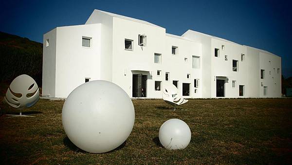 在大門口停完車後,迎接你的就會是幾張可以懶散躺在上面迎向陽光的椅子,以及晚上會發光引導你找到回家的路的大球們。
