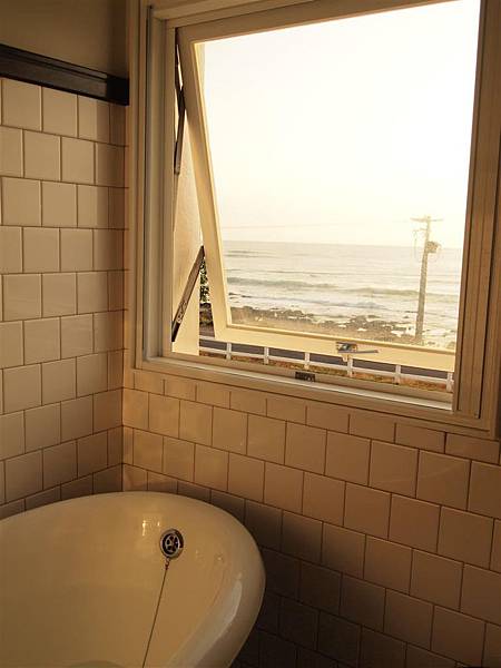 第二晚換了間房,這間房寬敞多了,是乾濕分離的衛浴,衛生紙上方是一台小型的CD player,那晚播的是昊恩家家的專輯;可以躺著看電視也是我夢寐以求的事情,懸掛在天花板上的電視機裝置一直是我的夢想,暨不佔空間,坦白說躺著用這個角度看電視正爽;而我真正的最愛是那座浴缸,晚上可以關了燈泡澡,聽到的是海的聲音,早上泡澡,看到的是東邊升起的太陽。