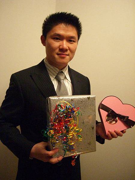 我們互相規定要穿得很正式,交換禮物,一起共度浪漫晚餐。我完全忘記我當年送了什麼耶 :P (李先生你這髮型是給哪個阿六仔剪的,真是奇醜無比阿)