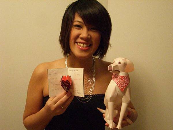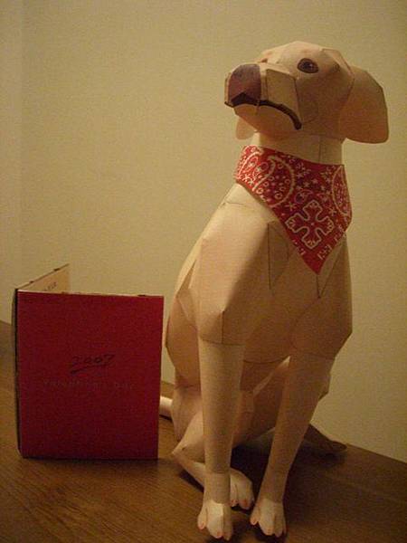 但是,我非常開心收到我的禮物喔,是老大親手做的卡片和一隻拉不拉多"紙"狗。因為他知道我很想念麥克西,於是上網找了手工美勞狗狗的圖案,自己用印表機印,一個禮拜躲在他的小閣樓做勞作。原本是想送我一隻黃金獵犬的,畢竟麥克西是黃金,只是因為長毛做不出來,所以改做拉拉,但當時的我真的非常開心,覺得怎麼會這麼貼心~~~~