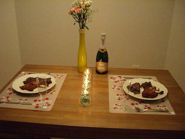 當晚的菜色叫做牛小排配烤鴨,因為這是冰箱裡的菜,烤鴨也是先醃好的,只要送進烤箱,顯示我一整個很好打發。