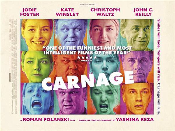 這齣戲最難得一見的是Jodie Foster爆青筋的演技,畢竟這和她以往在《沉默的羔羊》《戰慄空間》《空中危機》飾演冷靜至極的女性形象大不相同。Kate Winslet相較起來比《真愛旅程》稍顯内斂,不過難得可以看到兩大金獎影后同台尬戲嗆聲踹共,著實過癮。 5/25全台上映。