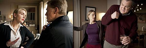 Kate Winslet和Christoph Waltz飾演動手的Zachary的父母親,Kate是投資界的仲介,看起來高雅大方,處處維護自己的兒子,但黃湯下肚後,就開始失態,難忍先生只關心工作的情緒也一併爆發;Christoph是一位律師,時時刻刻與工作為伍,不太關心他人的感受,常常用不以為然的態度面對太太和他人的批評指教。