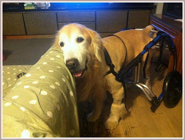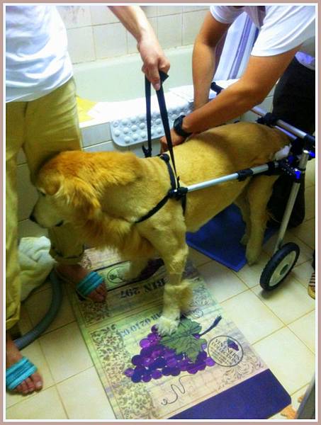 後腳完全無力,借用兩輪的力量輔助他可以站立
