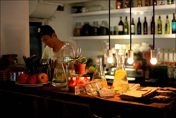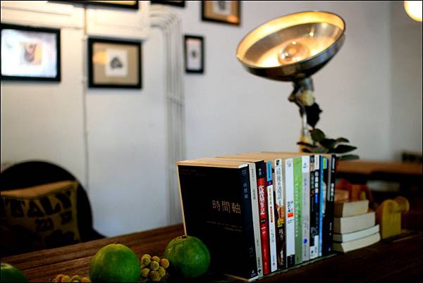 很家居的歐風裝潢設計,推開門就有一種好像是去朋友家坐坐的感覺,有沙發、餐桌、吧台,因為有做餐點,所以不時還飄來食物烹煮的香氣。更讓我有此感的另一個因素,是到處都有食材和書本散落在各處,是種擺設,卻也有一種自然的隨性感。好像聊著天,女主人就會拿起手邊的洋大蒜、洋蔥、南瓜說「我簡單弄個pasta,吃完晚餐再走吧!」於是你便拿起一本書等她。