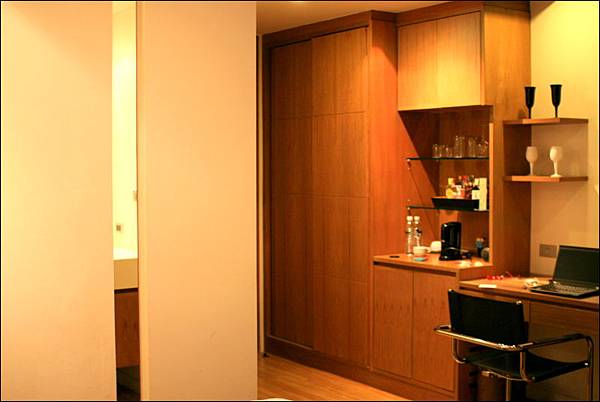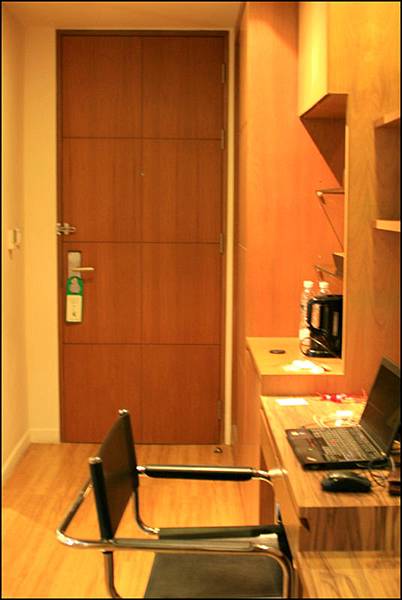 我的房間歸類為Morden Style, 其實就是最簡約現代的設計。大小為8.5坪,雙人房,浴室乾濕分離,有電視、冷氣、冰箱、吹風機、熱水壺、保險箱、浴袍、以及兩瓶免費的礦泉水。主要是她很乾淨,又感覺不會舊舊的,女生自己住多少會擔心出入的安全,一層樓約只有四間房,房客感覺也很單純,都是散客,多數是情侶,少數是親子(他們只有在吃早餐的時候會稍稍聲音大了點)。而入夜後真的挺安靜的,我幾乎都是被早上的太陽亮醒的,不然幾乎聽不到吵雜聲。