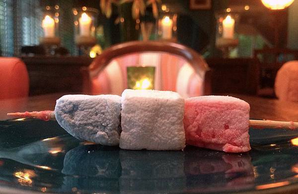 最後還會送上棉花糖,每個顏色都是一種口味,雖然知道它色素很多,但我覺得這好好吃喔