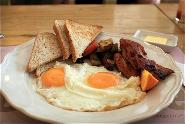不過,我的早餐一定要吃鹹的,所以很沒創意的點了最普通的套餐--荷包蛋加培根,再加上一杯咖啡,總價169元泰銖